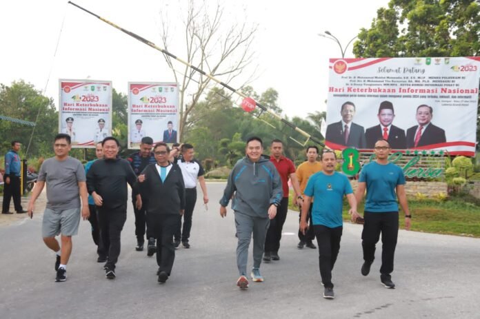 Pekanbaru (Nadariau.com) – Kapolda Riau, Irjen Pol Mohammad Iqbal, bersama Wadansat Brimob Polda Riau mengikuti Olah Raga Bersama Menkopolhukam RI, Prof. Dr. Moh. Mahfud MD yang diikuti oleh Deputi VII Kemenkopolhukam RI, Staff Khusus Kemenkopolhukam RI beserta Rombongan di Seputaran Hotel Labersa Kecamatan Siak Hulu, Kampar, Kamis (18/05/2023) pagi.