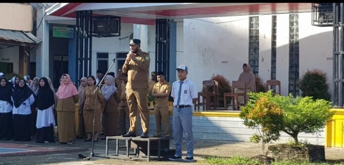 Rokan Hilir, Nadariau Com – Camat Bangko Aspri Mulya S.STP gelar apel bersama Kepala Sekolah, para guru dan anak didik siswa siswi SMAN 1 Bangko, Senin 22 Mei 2023.