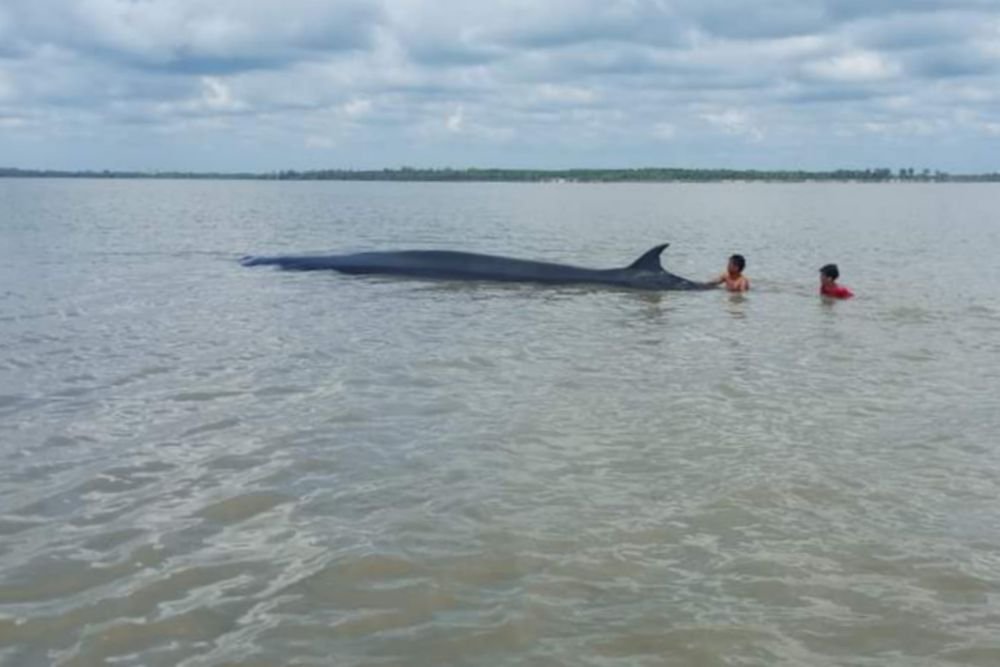Nelayan setempat yang melihat hal itu, berinisiatif melakukan penyelamatan dengan menyeret kembali paus ke lautan.