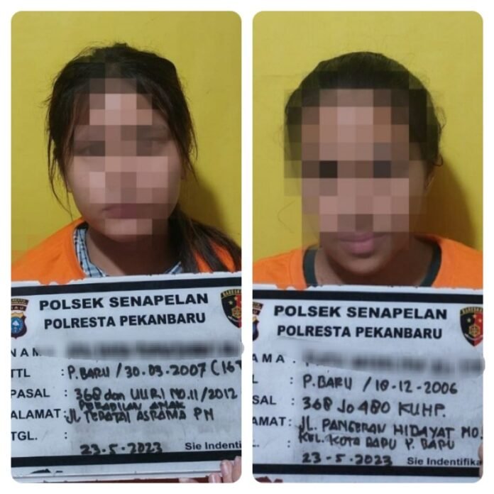 Pekanbaru (Nadariau.com) – Tim Opsnal Unit Reskrim Polsek Senapelan, Selasa (23/05/2023) siang kemaren, sekitar pukul 11.30 Wib, mengamankan dua orang remaja wanita yang sehari-hari berprofesi sebagai cewek Open BO masing-masing berinisial AD (16) dan RA (17) lantaran diduga telah melakukan aksi pemerasan disertai kekerasan terhadap salah seorang tamu hotel, pada Sabtu (08/04/2023) lalu.