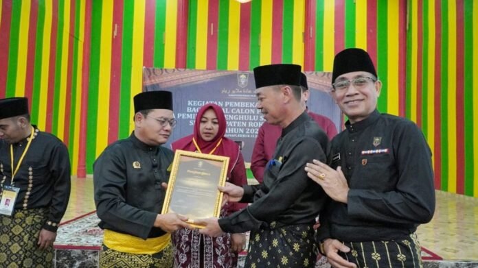 Rokan Hilir, Nadariau Com – Bupati Rokan Hilir (Rohil) Afrizal Sintong secara resmi membuka pembekalan adat bagi para calon Penghulu yang akan mengikuti pemilihan penghulu (Pilpeng) serentak tahap 1 tahun 2023, Senin (12/6/2023) di kantor Lembaga Adat Melayu Riau (LAMR) Rohil.