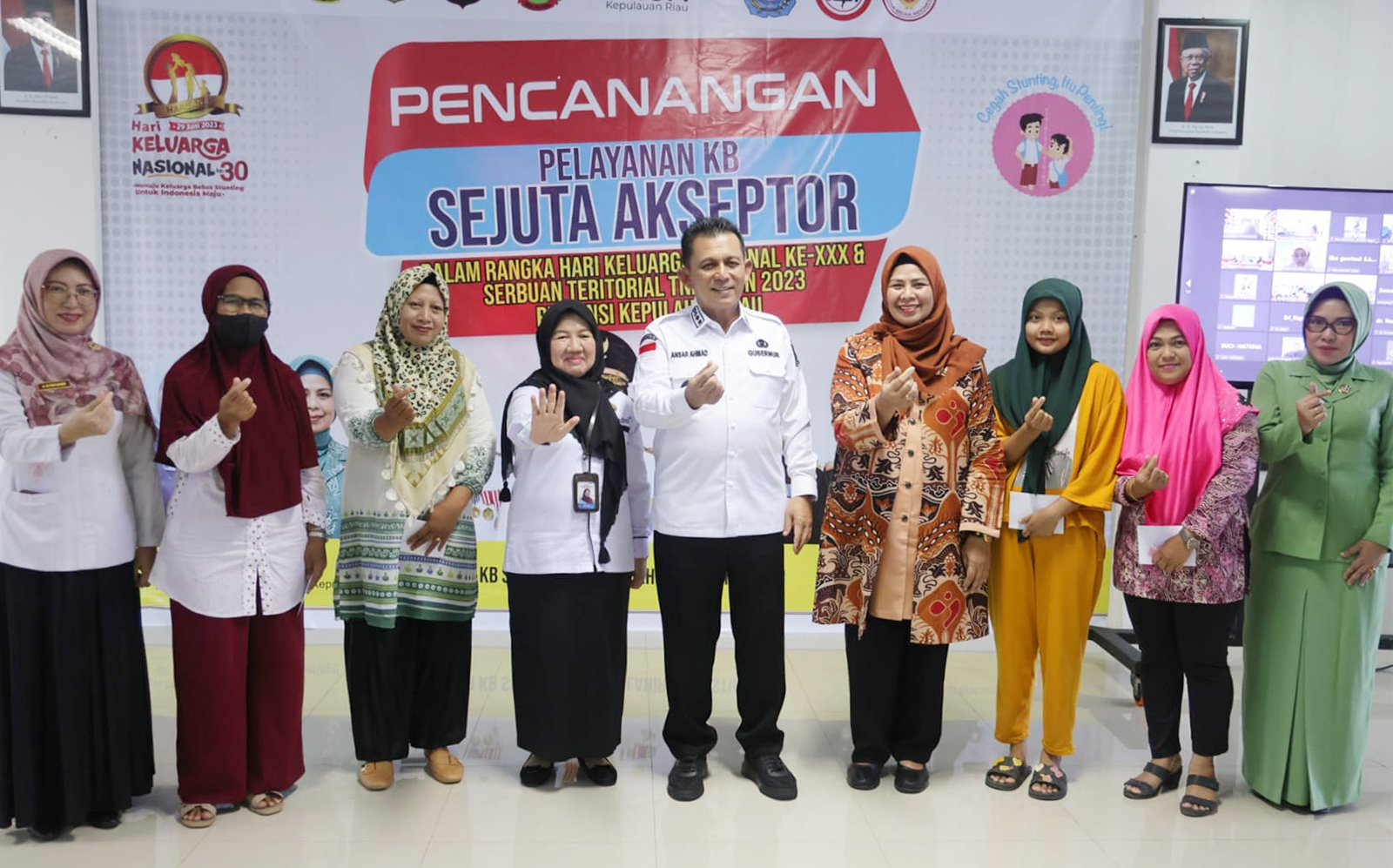 Gubernur Kepulauan Riau, H. Ansar Ahmad, bersama Kepala BKKBN Provinsi Kepri Rohina dan Ketua TP-PKK Provinsi Kepri Hj. Dewi Kumalasari Ansar dengan antusias mengikuti pencanangan nasional secara virtual, sembari meluncurkan program ini di Kepri pada Rabu (14/06) di Puskesmas Batu 10, Tanjungpinang.