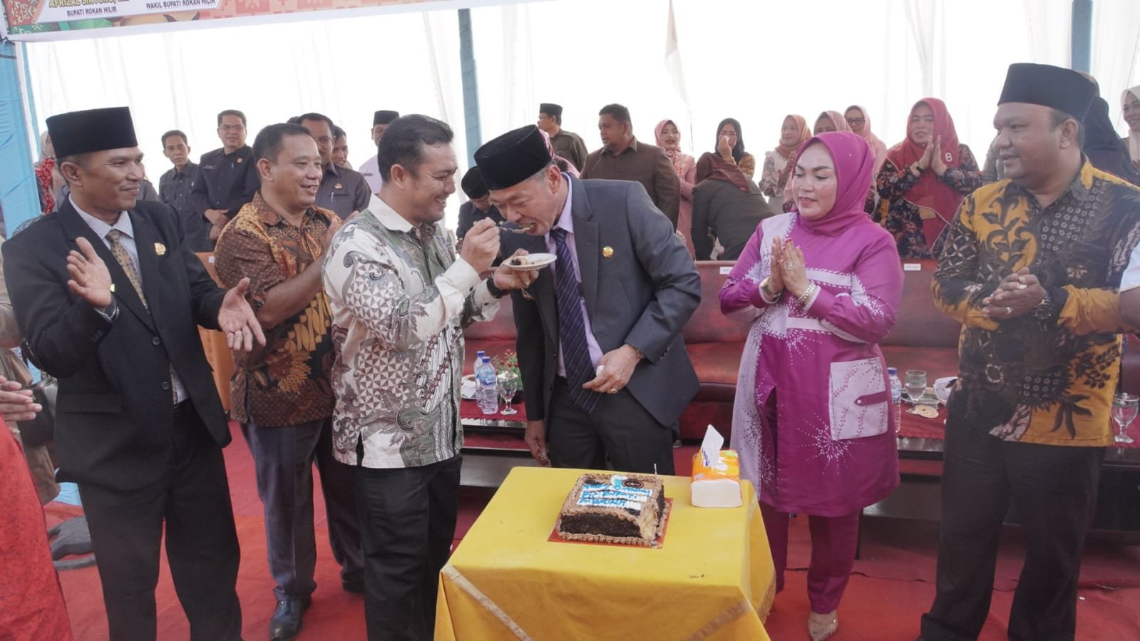 Namun kedatangan Bupati Rokan Hilir itu Camat juga tidak menduga bahwa Bupati membawa bingkisan sembako dan diserahkan secara simbolis kepada masyarakat.