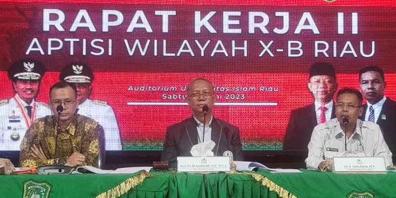 Desakan itu menjadi salah satu butir rekomendasi Rapat Kerja APTISI Wil. X-B Riau di Auditorium Gedung Rektorat Universitas Islam Riau, Sabtu siang (17/06 2023). Raker yang juga dihadiri pimpinan perguruan tinggi swasta itu dirangkai dengan sejumlah kegiatan. Antara lain halal bi halal dan Pelantikan serta Pengukuhan Pengurus APTISI Wilayah X-B Riau Komisariat Daerah Dumai masa bhakti 2023-2027.