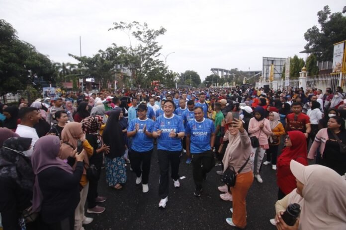 Pekanbaru (Nadariau.com) – Ribuan masyarakat dari berbagai daerah di Kota Pekanbaru antusias mengikuti Fun walk atau jalan sehat dan senam aerobik yang digelar oleh Polda Riau dalam rangka memperingati HUT Bhayangkara yang ke-77, Minggu (25/06/2023) pagi, sekitar pukul 06.00 Wib.