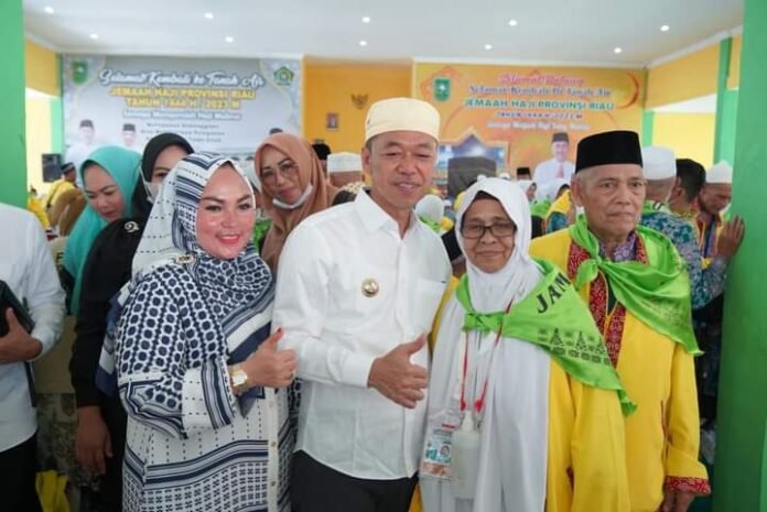 Rokan Hilir, Nadariau Com – Bupati Rokan Hilir (Rohil) Afrizal Sintong SIP didampingi ibu ketua PKK Sanimar Afrizal langsung menyambut jamaah Haji Rokan Hilir Yang Telah Tiba di Tanah Air Sabtu, 8 juli 2023.