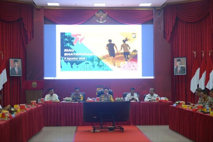Pekanbaru (Nadariau.com) – Kepolisian Daerah (Polda) Riau menggelar rapat koordinasi (Rakor) Bhayangkara Run 2023, di Aula Tribrata, Rabu (12/07/2023) dipimpin langsung Kapolda Riau, Irjen Pol Mohammad Iqbal.