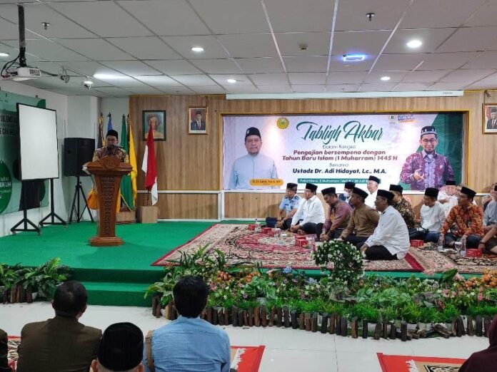 Pekanbaru (Nadariau.com) – Bersempena tahun baru Islam 1 Muharram 1445 Hijriah, Universitas Muhammadiyah Riau (UMRI) mengadakan tabligh akbar dengan menghadirkan guru pengajian, yaitu Ustadz Dr Adi Hidayat LC MA, Kamis (20/7/2023).
