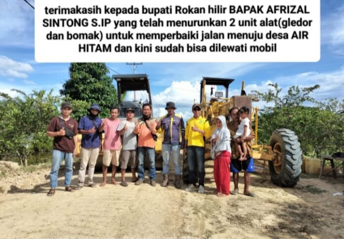 Aspirasi masyarakat Desa Air Hitam itu pun diresponstif cepat oleh Bupati Rokan Hilir (Rohil) Afrizal Sintong SIP. Pasalnya Bupati langsung menurunkan dua (2)unit alat berat jenis Gledor dan Bomak untuk memperbaiki jalan menuju Desa Air Hitam, itu.