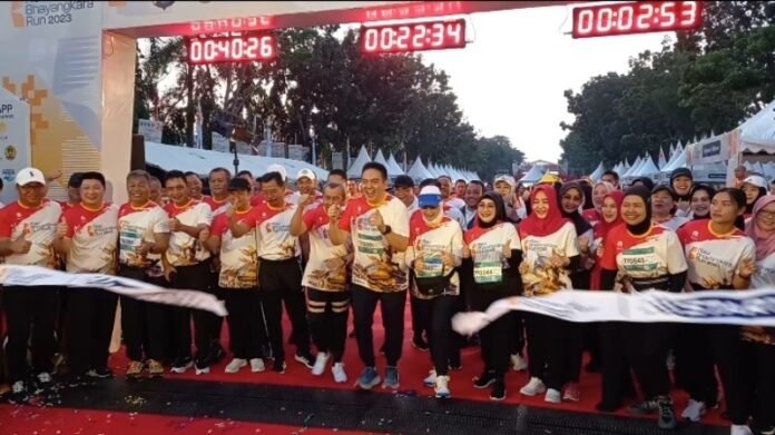 Para peserta Bhayangkara Run 2023 dibagi menjadi tiga kategori, yaitu 5K, 10K dan 21K yang diikuti 2000 lebih peserta dari seluruh indonesia
