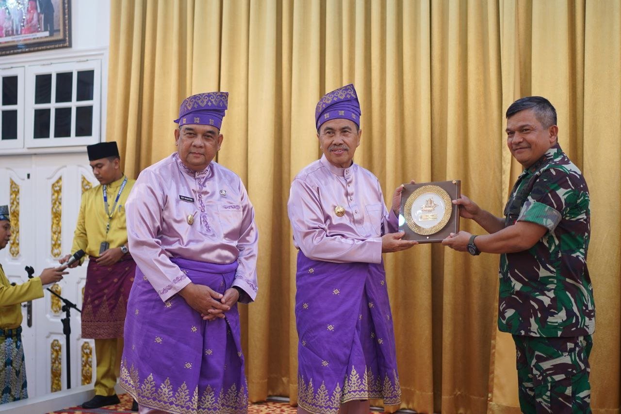 Dalam kesempatan ini, Gubernur Syamsuar didampingi Wakil Gubernur Riau, Edy Natar Nasution saat memberi dan menerima cendera mata dari Pangdam I/Bukit Barisan. Turut Hadir Kapolda Riau, Danrem 031/Wira Bima dan tamu undangan lainnya.(mcr/sony)