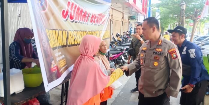 Gelar Jumat Berkah, Polresta Pekanbaru Berbagi Makan Siang Gratis Ke Masyarakat