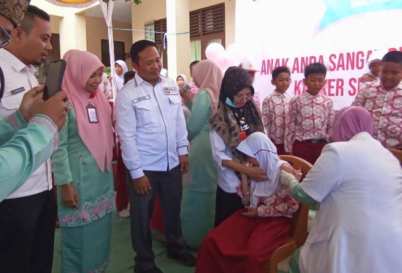 Dinkes Inhil dan Puskesmas Tembilahan Kota Laksanakan Imunisasi HPV di SD 023