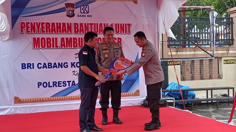 Bantuan 1 unit mobil ambulance ini diserahkan langsung oleh RCEO BRI Cabang Pekanbaru, Kiki Andre Dapetra, yang diterima langsung Kapolresta Pekanbaru, Kombes Pol Jefri RP Siagian dan disaksikan langsung oleh Kapolda Riau, Irjen Pol Mohammad Iqbal, di Halaman Mapolresta, Jalan Ahmad Yani, Pekanbaru.