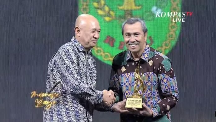 Gubernur Riau Syamsuar Terima Penghargaan dari Kompas TV