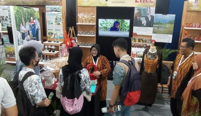 Stand pameran Bank Sampah Agrowisata Ponpes Ibnu Almburok binaan PT Pertamina Hulu Rokan (PHR), tampak ramai dikunjungi pengunjung.