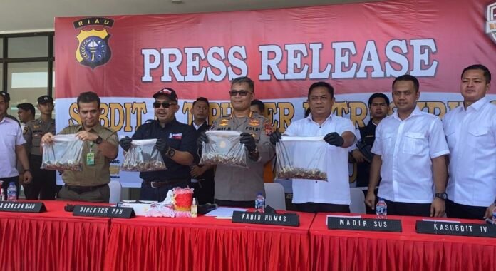 Pekanbaru (Nadariau.com) – Subdit IV Tipidter Direktorat Kriminal Khusus (Ditkrimsus) Polda Riau berhasil menggagalkan penyelundupan 41 kilogram (Kg) sisik trenggiling yang berasal dari Padang Sidempuan, Sumatera Utara.
