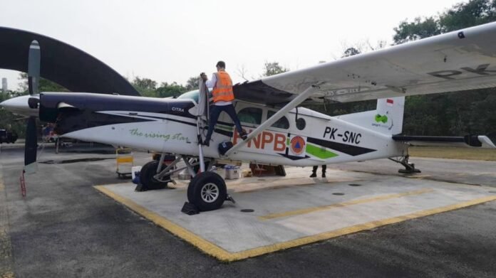 Proses hujan buatan sendiri direncanakan dilakukan hingga 12 Oktober mendatang. Ada pun pesawat yang digunakan untuk TMC adalah jenis Pillatus PC-6.