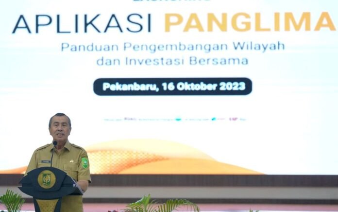 Pekanbaru (Nadariau.com) – Gubernur Riau (Gubri) Syamsuar melaunching aplikasi PANGLIMA (Panduan Pengembangan Wilayah dan Investasi Bersama) di Gedung Daerah Pauh Janggi, Senin (16/10/2023).