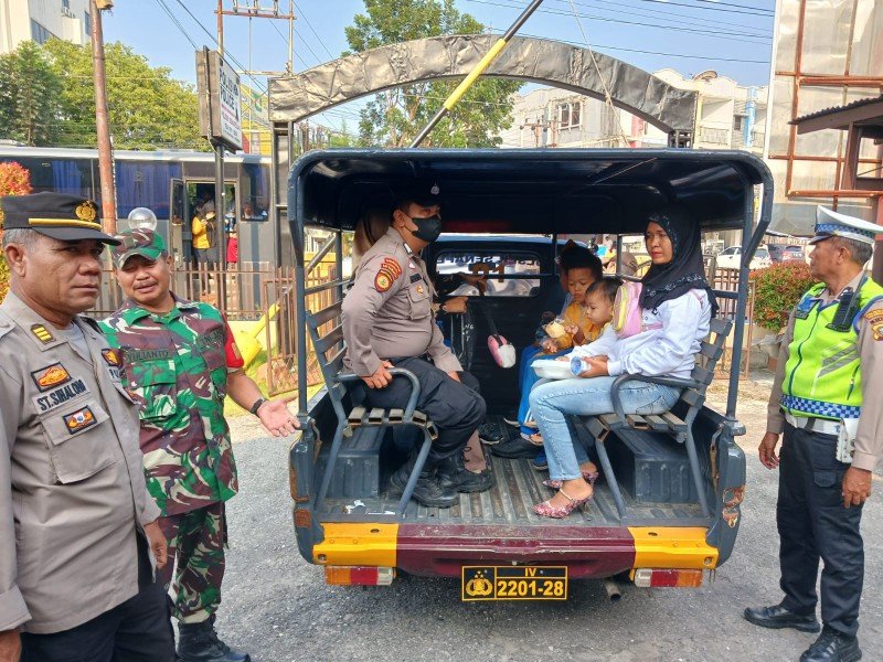 Warga yang ikut diantar langsung oleh personil dari Polsek Senapelan menuju lokasi acara menggunakan bus serta 3 unit mobil patroli Polsek Senapelan.