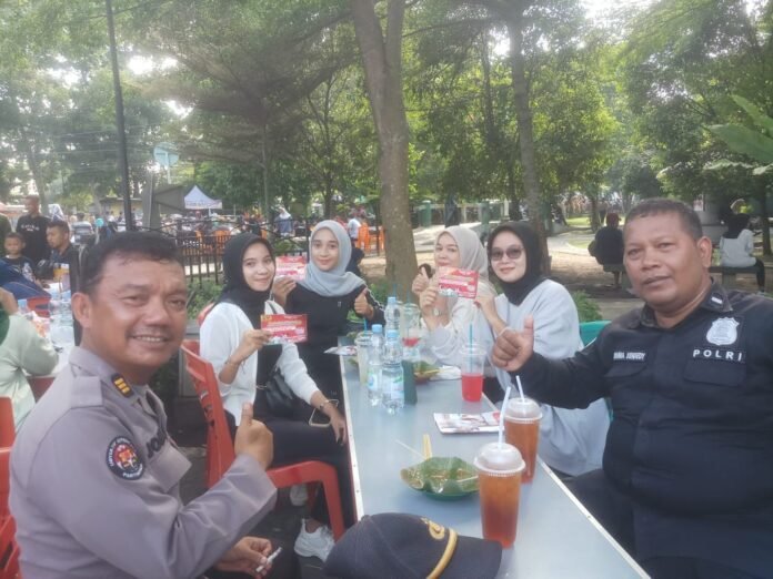 Pekanbaru (Nadariau.com) – Team OMB Humas Polda Riau melaksanakan sambang dan Bagikan stiker terkaid Pemilu 2024, Minggu(29/10/2023) di Pasar Cik Puan Jalan Tuanku Tambusai Pekanbaru.
