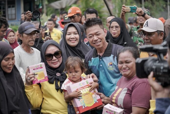 Dengan kondisi banjir yang tengah melanda, Bupati Rohil Afrizal Sintong secara langsung melakukan peninjauan dan membagikan sembako kepada masyarakat, Minggu (29/10/2023).