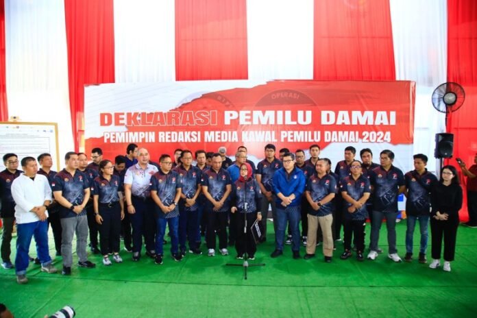 Pekanbaru (Nadariau.com) – Puluhan pemimpin redaksi media massa, Divisi Humas Polri, dan Dewan Pers menggelar deklarasi pemilu damai. Deklarasi Kawal Pemilu Damai 2024 ini menjadi komitmen bersama sebagai bentuk sinergitas menghadapi pesta demokrasi.