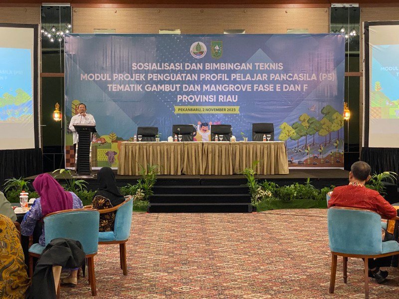 Kegiatan yang digelar di Ballroom Hotel Pangeran Pekanbaru ini, dibuka langsung oleh Kabid Guru dan Tenaga Pendidikan Disdik Riau, Dasril dan dihadiri Kepala Pokja Edukasi dan Sosialisasi BRGM RI, Dr Suwignya Utama, serta tamu undangan lainnya.