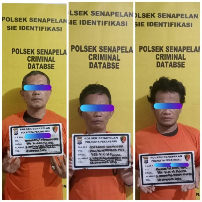 Kapolresta Pekanbaru, Kombes Pol Jefri RP Siagian saat dikonfirmasi melalui Kapolsek Senapelan, Kompol Noak Pembina Aritonang mengatakan, ketiga pelaku berhasil diamankan petugas saat berada di Pasar Higienis tersebut.