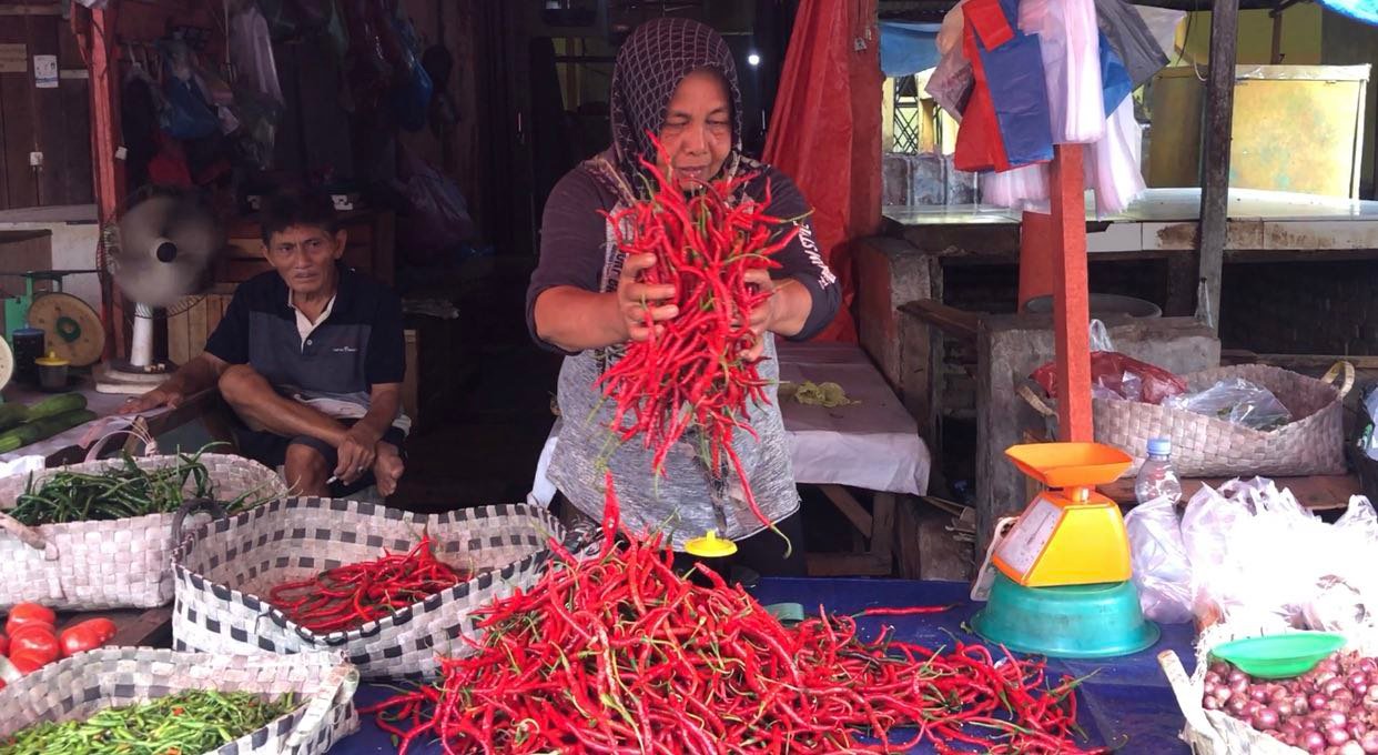 Pekanbaru (Nadariau.com) – Harga cabai di Kota Pekanbaru hingga saat ini masih mengalami kenaikan. Berdasarkan pantauan di Pasar Agus Salim Kota Pekanbaru harga cabai merah keriting Rp.70 ribu sampai Rp.80 ribu per kg.