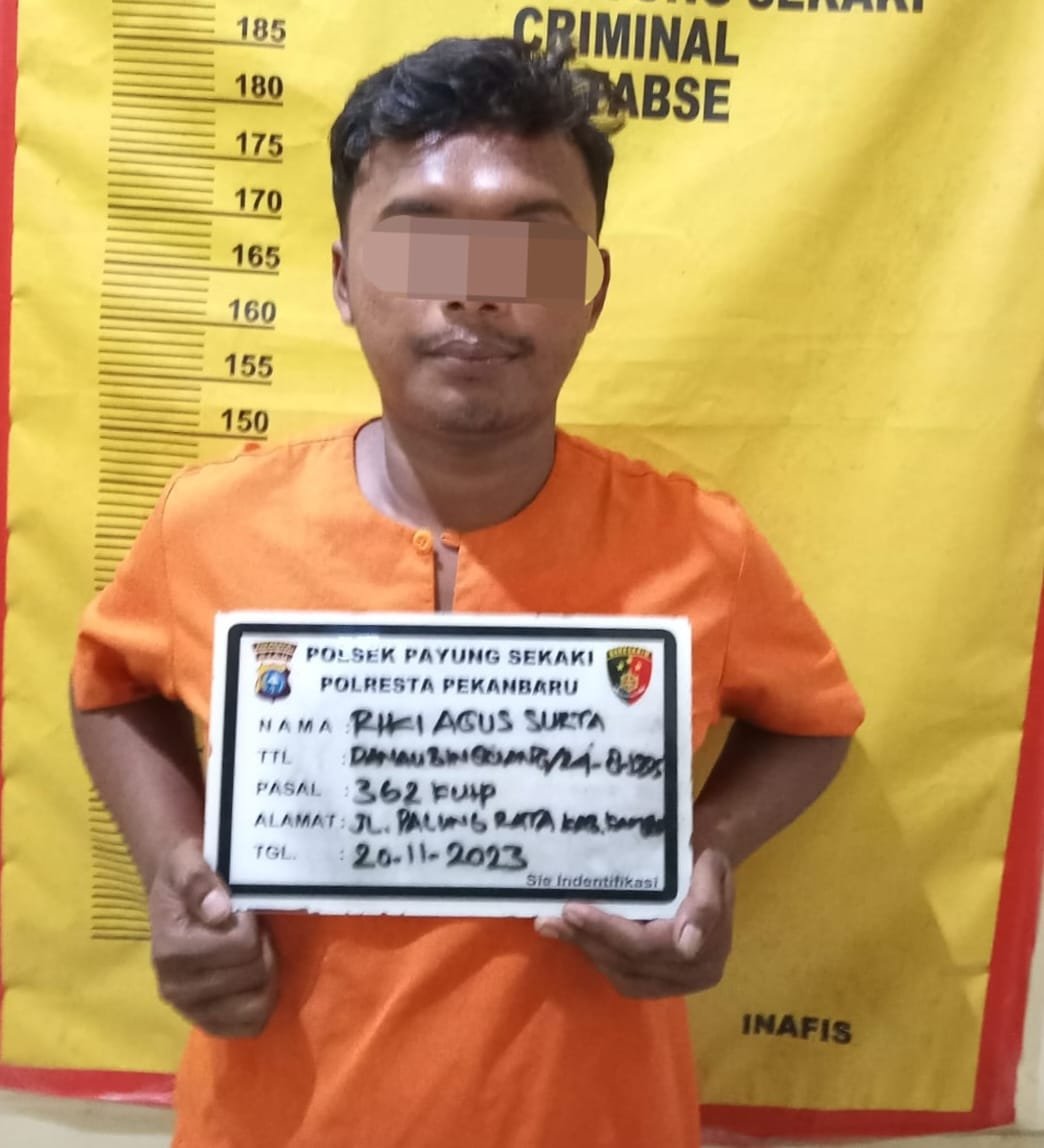 Pekanbaru (Nadariau.com) – Seorang sopir bernama Riki Agus (28) terpaksa diamankan petugas kepolisian Polresta Pekanbaru lantaran melakukan pencurian di Jalan Terubuk Ujung, Tengkerang Barat, Kecamatan Marpoyan Damai, pada Senin (20/11/2023) siang kemaren, sekitar pukul 16.00 WIB.