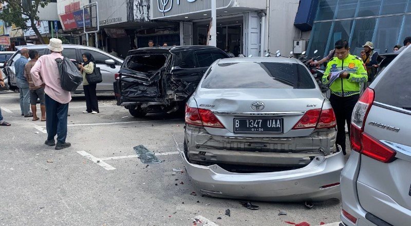 Pekanbaru (Nadariau.com) – Kecelakaan yang libatkan lima mobil dan satu motor akibat sopir dari mobil Daihatsu Terios mengantuk hingga tabrak 5 mobil yang terparkir di Jalan Jenderal Sudirman, Pekanbaru.