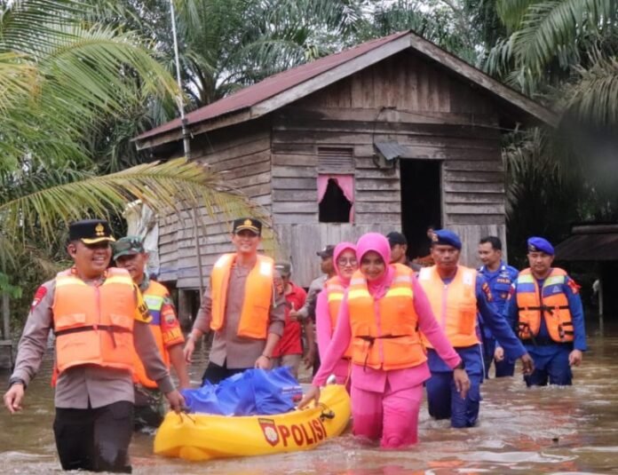 BerandaHeadlineKapolres Pelelawan Bersama Istri Salurkan Bantuan Korban Banjir di Sungai Kampar