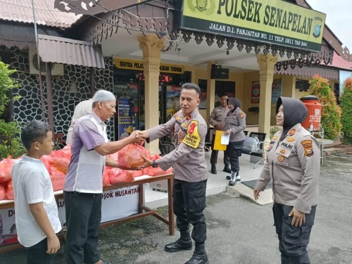 Kapolsek Senapelan, Kompol Noak P Aritonang mengatakan, total ada 60 anak yatim dan warga di lingkungan Kecamatan Senapelan yang mendapat bantuan paket sembako.