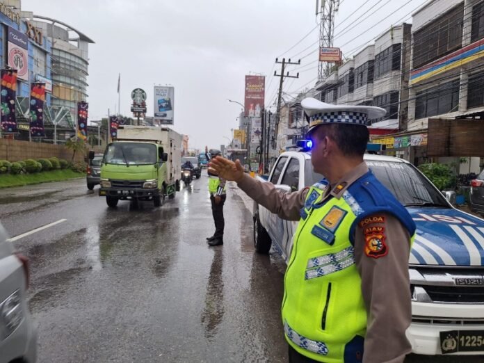 Pekanbaru (Nadariau.com) – Ditlantas Polda Riau selaku Satgas Kamseltibcar Lantas Ops Lilin Lancang Kuning 2023-2024 melaksanakan kegiatan pemantauan dan pengaturan lalu lintas dibeberapa titik dalam wilayah kota Pekanbaru, Sabtu (23/12/2023).