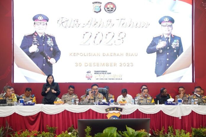 Pekanbaru (Nadariau.com) – Sepanjang tahun 2023, Polda Riau beserta jajaran telah berhasil menyita kurang lebih 1 ton sabu dari tangan 2.518 orang tersangka. Selain sabu, Polda Riau juga berhasil mengamankan 284.765 butir pil ektasi yang disita dari tangan 152 orang tersangka.