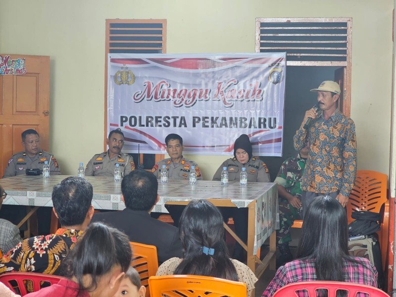Pekanbaru (Nadariau.com) – Polresta Pekanbaru bersama Polsek Tampan menggelar kegiatan Minggu Kasih di Gereja GKPA Angkola jalan SM Amin, Kelurahan Simpang Baru, Pekanbaru, Minggu (07/01/2024) pagi.