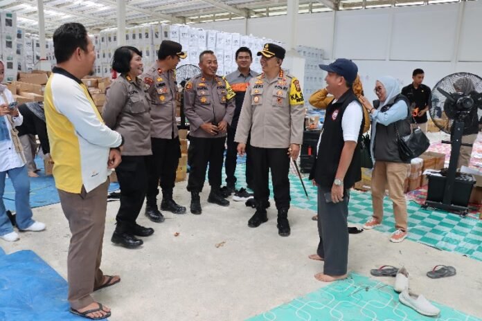 Pekanbaru (Nadariau.com) – Kapolresta Pekanbaru Kombes Pol Jeki Rahmat Mustika bersama Pejabat Utama PJU didampingi Kapolsek Bukit Raya, AKP Syafnil, Minggu (07/01/2024) siang sekitar pukul 11.30 Wib, mengecek proses penglipatan surat suara yang sedang berlangsung di Gudang Logistik KPU Kota Pekanbaru.