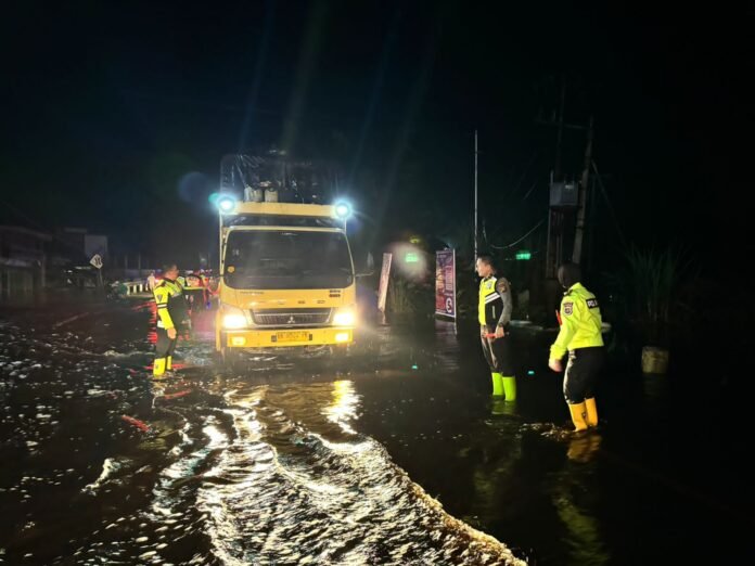 “Benar anggota Satlantas kita langsung turun ke lokasi memberi bantuan pengamanan dan mengurai kemacetan akibat terendamnya ruas jalan di beberapa tempat di jalan lintas Sumatera,” AKBP Andrian, Selasa (09/01/2024).
