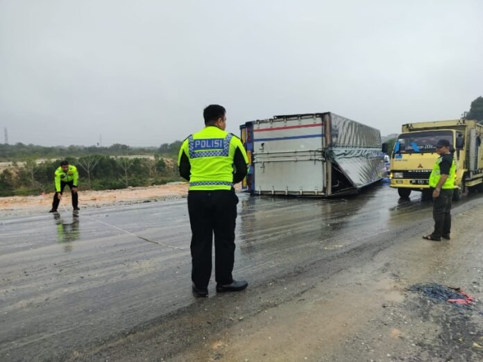BerandaHeadlineTerlibat Kecelakaan, Truk Tronton di Pekanbaru Terbalik Usai Tabrak Bus