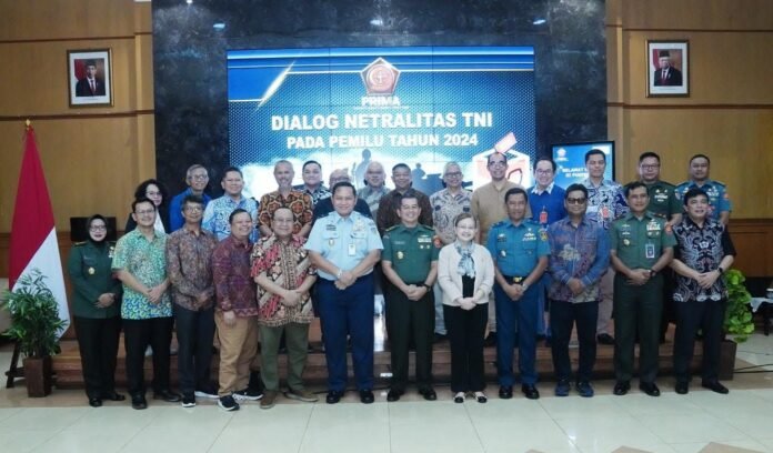 Jakarta, Nadariau Com – Untuk menjamin netralitas Tentara Nasional Indonesia (TNI) menjelang Pemilihan Umum 2024 terus terjaga, Pusat Penerangan TNI Bersama dengan Federasi Teknologi Informasi Indonesia (FTII) menggelar kegiatan dialog bertema : Netralitas TNI pada Pemilu 2024 di Balai Wartawan Puspen TNI, Mabes TNI, Cilangkap, Jakarta Timur, (Rabu 10/1/2024). Kegiatan ini menuai apresiasi dari Ketua Umum Asosiasi Pengusaha TIK Nasional Ir. Soegiharto Santoso, SH yang ikut hadir pada kegiatan ini.