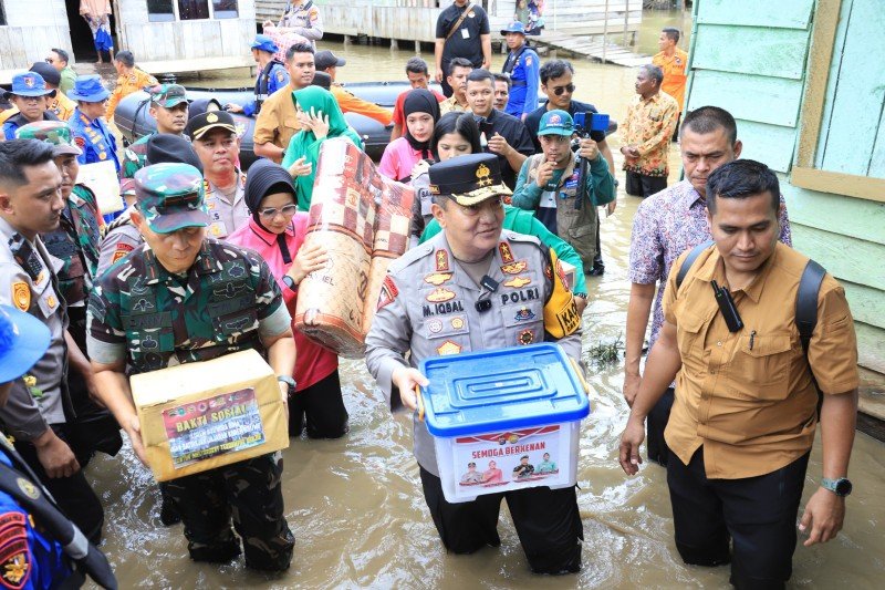 “Hari ini saya bersama Danrem, ada Pak Bupati juga mendatangi masyarakat yang menjadi korban banjir. Disini ada sekitar 50 kepala keluarga. Ini bukti bahwa pemerintah hadir dalam kondisi apapun bersama masyarakat,” kata Kapolda.