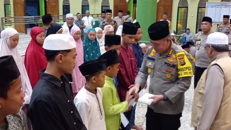 Diakhir acara Irwasda didampingi Wakapolres Inhu, Kompol Teddy Ardian memberikan bantuan sumbangan kepada pengurus Masjid dan membagikan santunan kepada 30 orang anak yatim yang ada di sekitar masjid tersebut.