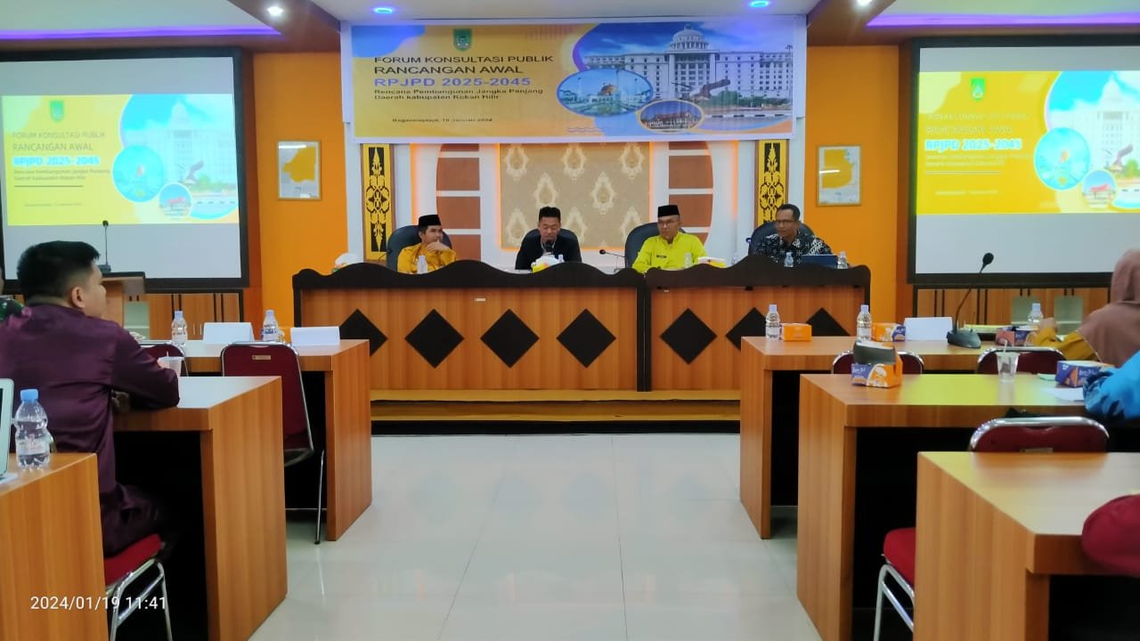 Rokan Hilir, Nadariau Com – Bupati Rohil Afrizal Sintong buka secara resmiĀ kegiatan Forum Konsultasi Publik Rancangan Awal Rencana Pembangunan Jangka Panjang Daerah ( RPJPD ) tahun 2025 – 2045. Kegiatan di selenggarakan Badan Perencanaan Pembangunan Daerah ( Bappeda ) Rohil, Jumat (18/1/2024) di ruangan rapat Kantor Bappeda Jalan Lintas Pesisir batu enam Bagansiapiapi, Rohil, Propinsi Riau.