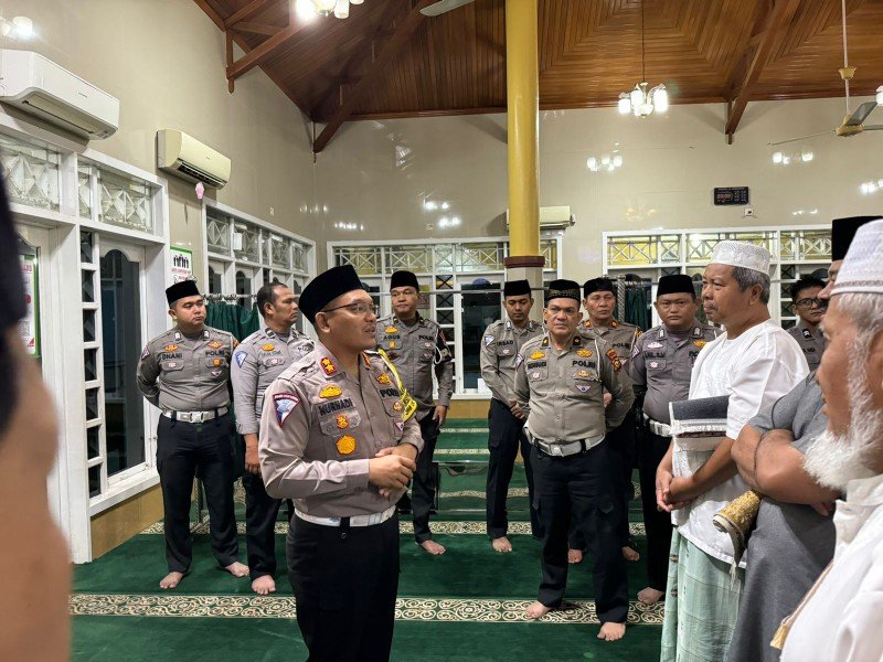 Pekanbaru (Nadariau.com) – Jelang pelaksanaan Pemilu 2024 Direktur Lalu Lintas (Dirlantas) Polda Riau, Kombes Pol Taufiq Lukman Nurhidayat yang di wakili Wadirlantas AKBP Nurhadi Ismanto di dampingi Tim Sholat Shubuh Keliling melaksanakan kegiatan Coolin System di Masjid Paripurna Al-Mukminin Jalan Kutilang Sakti, Simpang Baru, Kecamatan Tampan, Kota Pekanbaru, Sabtu (20/01/2024) pagi.