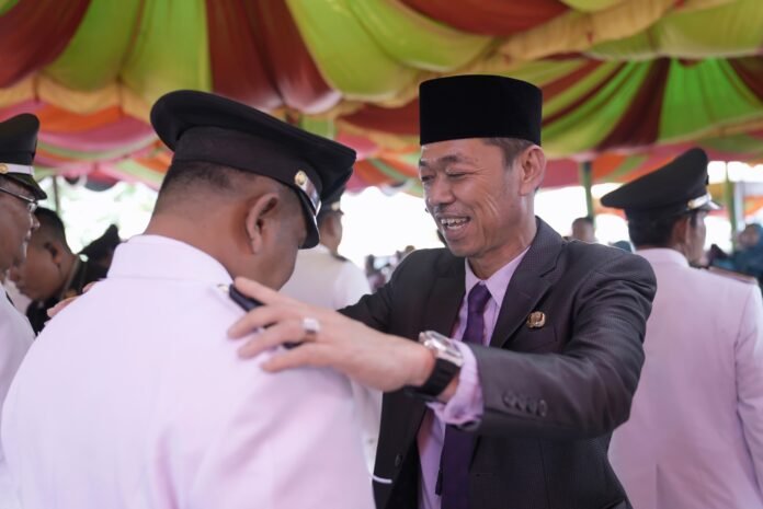 Rokan Hilir, Nadariau Com – Dengan berakhirnya masa jabatan Penghulu defenitif, Bupati Kabupaten Rokan Hilir (Rohil) Afrizal Sintong, S.IP, M.Si melantik  sebanyak 23 Penjabat Kepenghuluan dari 5 Kecamatan sekaligus membagikan secara simbolis bantuan sembako kepada warga terdampak banjir di Kecamatan Pekaitan, di Jalan Lintas Pesisir dekat jembatan Pedamaran II Kepenghuluan Pedamaran Kecamatan Pekaitan, Rohil, Propinsi Riau. Kamis 1-02-2024.