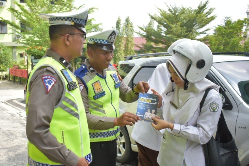 Pekanbaru (Nadariau.com) – Pemungutan suara pemilu 2024 semakin dekat, Satuan Lalu Lintas Polresta Pekanbaru gencar melakukan sosialisasi dan imbauan Pemilu Damai 2024, kali ini Satlantas Polresta Pekanbaru mendatangi Kemenkes Poltekkes Riau Jalan Melur, Kecamatan Sukajadi, Selasa (06/02/2024).
