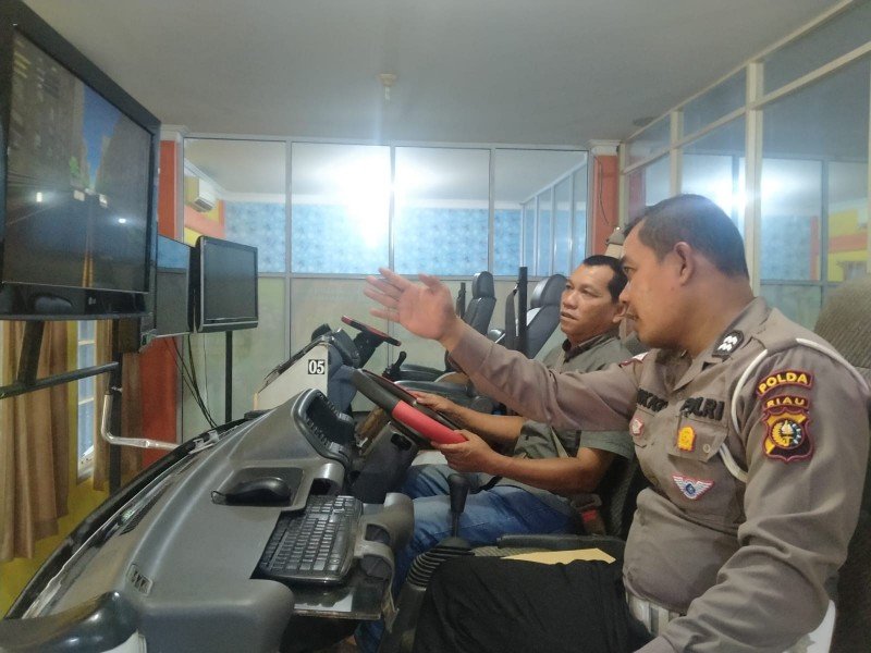 Setelah semua persyaratan dilengkapi, Peserta uji SIM peningkatan Golongan selanjutnya melaksanakan Test diruang Simulator, diketahui bahwa, dalam alat Simulator tersebut tersedia layanan beberapa materi seperti, Materi uji reaksi, Uji antisipasi, Uji konsentrasi, Uji sikap pengemudi. Adapun Lokasi Tempat Uji Simulator bertempat di Pelayanan SKUKP Ditlantas Polda Riau Jalan Pesisir Rumbai, Pekanbaru.