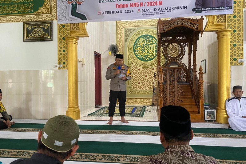 Pekanbaru (Nadariau.com) – Kapolresta Pekanbaru Kombes Pol Jeki Rahmat Mustika berserta jajaran melaksanakan salat jumat berjamaah, di Masjid AL – Mukmini, Jalan Amal, Perum Bumi Tangor Lestari, Kelurahan Mentangor, Kecamatan Kulim, Pekanbaru, Jumat (09/02/2024).