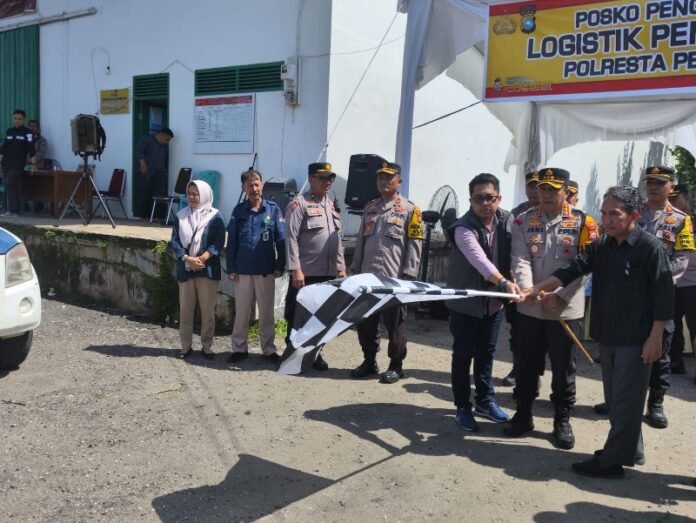 Pekanbaru (Nadariau.com) – Kapolresta Pekanbaru, Kombes Pol Jeki Rahmad Mustika bersama Ketua KPU Kota Pekanbaru, Anton Merciyanto, Sabtu (10/02/2024) siang, sekitar pukul 14.30 Wib, melaksanakan kegiatan Simulasi Pamwal Pendistribusian Logistik Pemilu Tahun 2024, di Gudang Logistik KPU Kota Pekanbaru Jalan KH Nasution Kelurahan Simpang Tiga, Kecamatan Bukit Raya, Pekanbaru.